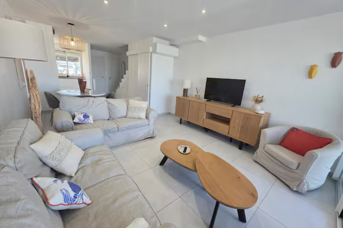 → Séjour confortable et climatisé, décoré avec soin dans un esprit bord de mer 🌴