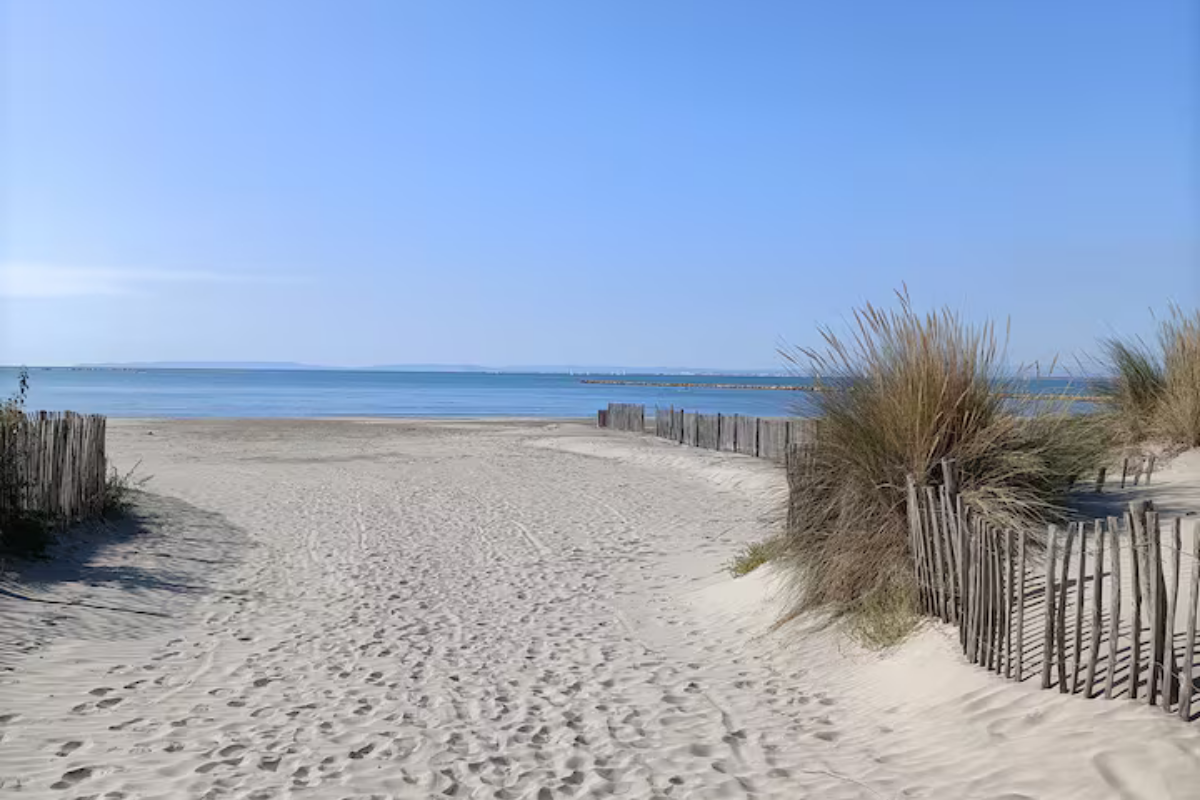 La terrasse est équipée d’une table pliante et de chaises ainsi que de deux fauteuils pliants Lafuma.